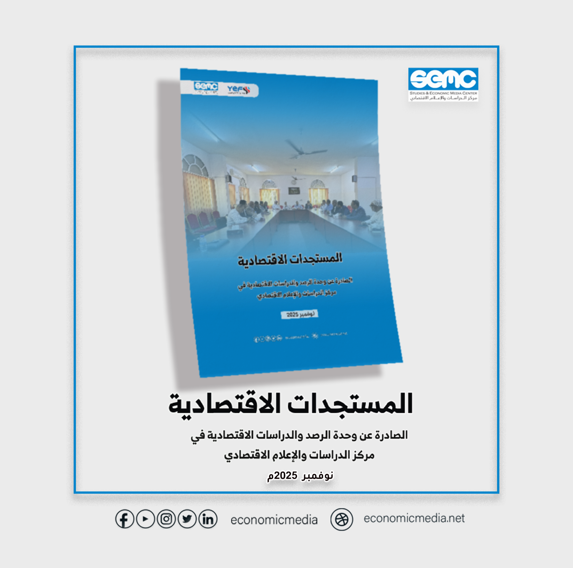تسلط هذه النشرة الاقتصادية الشهرية عن مركز الدراسات والإعلام الاقتصادي، الضوء على أبرز التطورات الاقتصادية في اليمن، وتحليل العوامل السياسية والإدارية المؤثرة في مسار الاقتصاد الوطني وانعكاساتها على حياة المواطنين في شهر نوفمبر 2025 كما قدمت تحليلاُ للمشهد الاقتصادي خلال أكتوبر وذلك في ظل إقرار مجلس القيادة الرئاسي لخطة الإصلاحات الاقتصادية الشاملة المقدمة من الحكومة اليمنية في عدن.